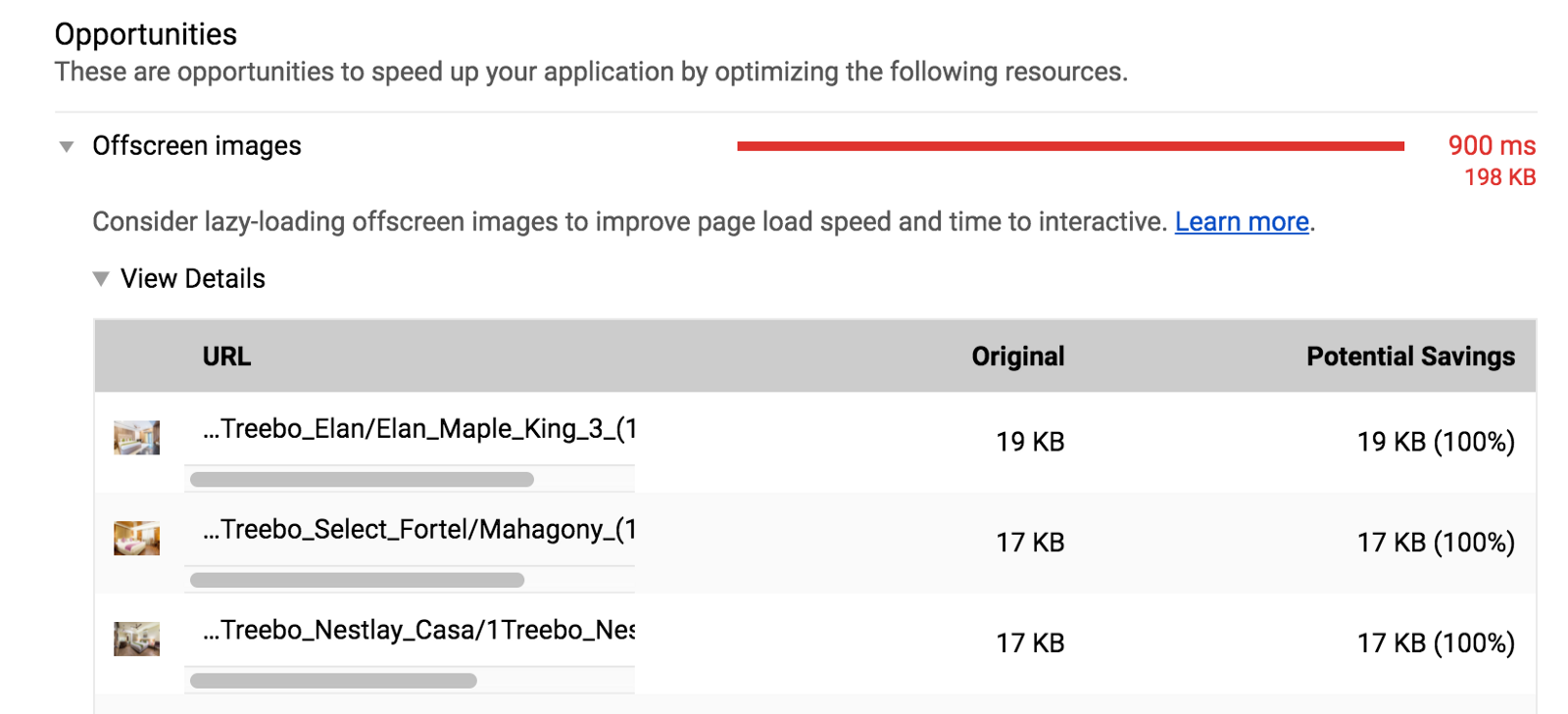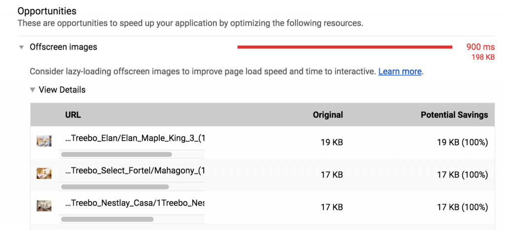 Google的Lighthouse工具的屏幕外图片检查项目可以有效排查出这些问题: